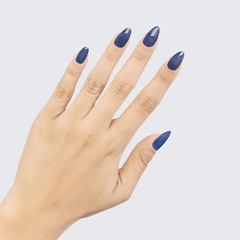 This warm blue polish is overcast with a lovely grey tint.